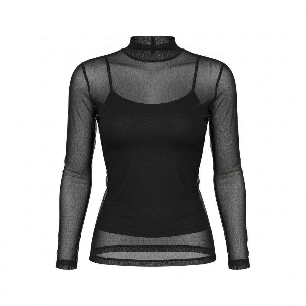 Camibuso Mesh de diseño transparente que combina estilo contemporáneo con versatilidad. Confeccionado en tela mesh de alta calidad, ofrece una estética sofisticada ideal para capas o uso independiente. Su estructura transpirable proporciona comodidad durante todo el día, mientras que el acabado mesh crea un efecto visual moderno y atractivo. Perfecto para quienes buscan prendas que equilibren tendencia y funcionalidad.